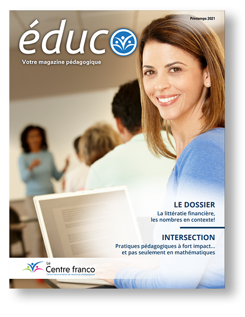 Le magazine éduco, conçu par le Centre franco, est destiné à tous les membres de la communauté scolaire francophone. Il porte un regard rigoureux sur les pratiques pédagogiques de l’heure tout en proposant des outils et des stratégies pour en faciliter la mise en œuvre dans les écoles.